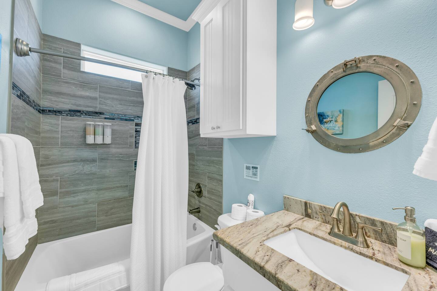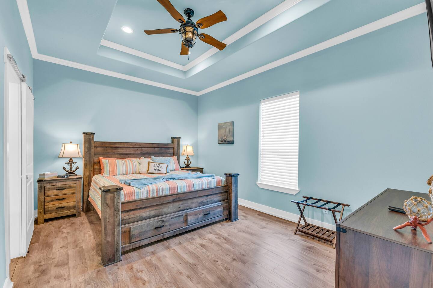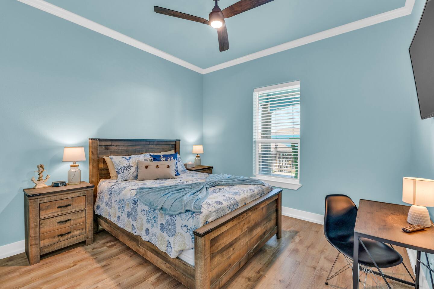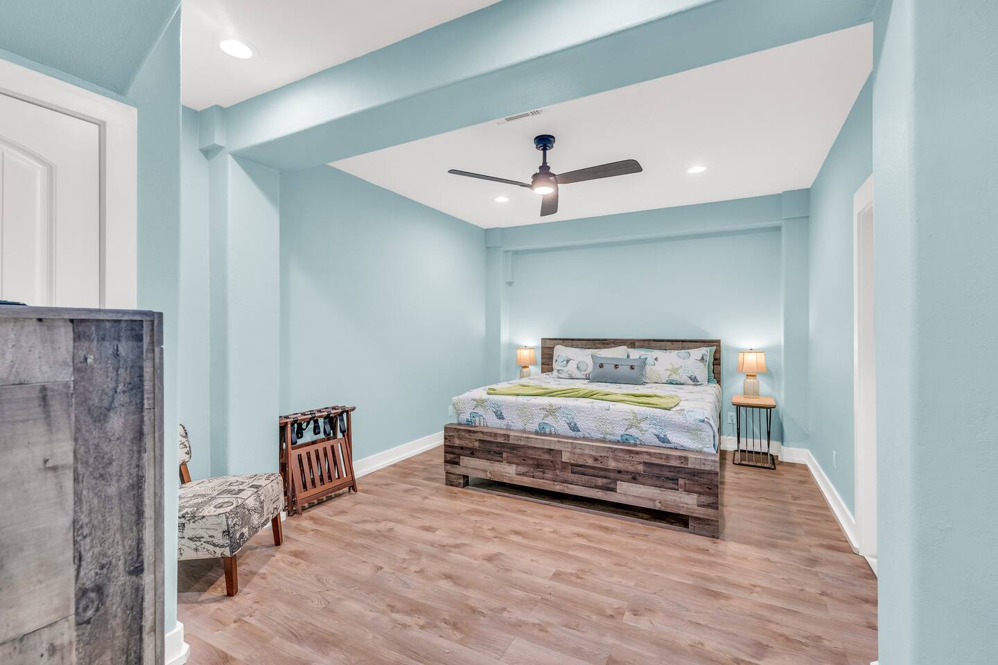 MEET ME ON THE MEZZ – welcome to the Mezzanine at Crystal Beach, where you can enjoy 3 levels of paradise. This family-friendly retreat is the perfect gathering space for your next beach getaway. A 3-minute walk is all that separates you from the sand. You’ll love the Mezzanine level bar, king suite, and kitchen with garage-door access to the outside. The top level welcomes everyone in your party with a family-friendly bunk room, king owner’s suite, and queen bedroom with workstation.