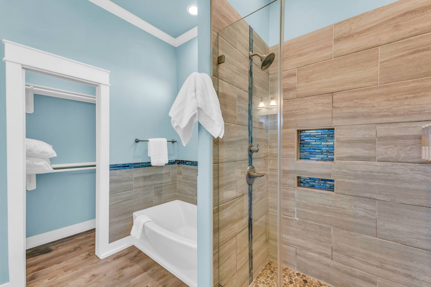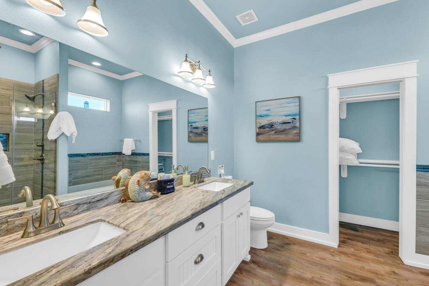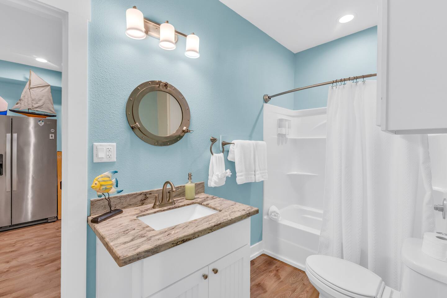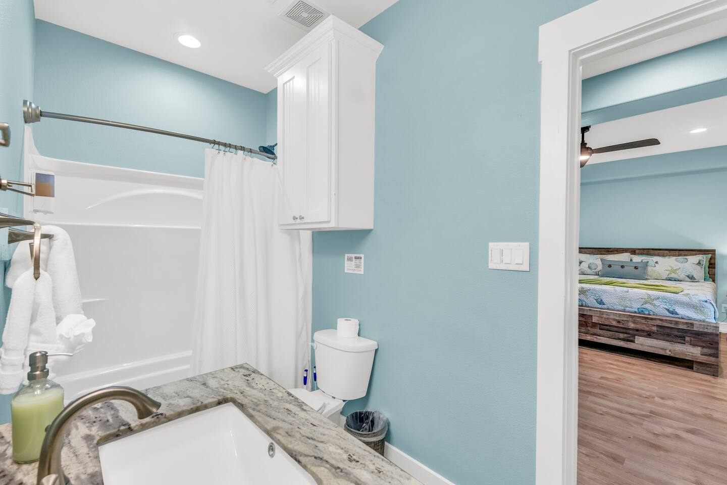 MEET ME ON THE MEZZ – welcome to the Mezzanine at Crystal Beach, where you can enjoy 3 levels of paradise. This family-friendly retreat is the perfect gathering space for your next beach getaway. A 3-minute walk is all that separates you from the sand. You’ll love the Mezzanine level bar, king suite, and kitchen with garage-door access to the outside. The top level welcomes everyone in your party with a family-friendly bunk room, king owner’s suite, and queen bedroom with workstation.