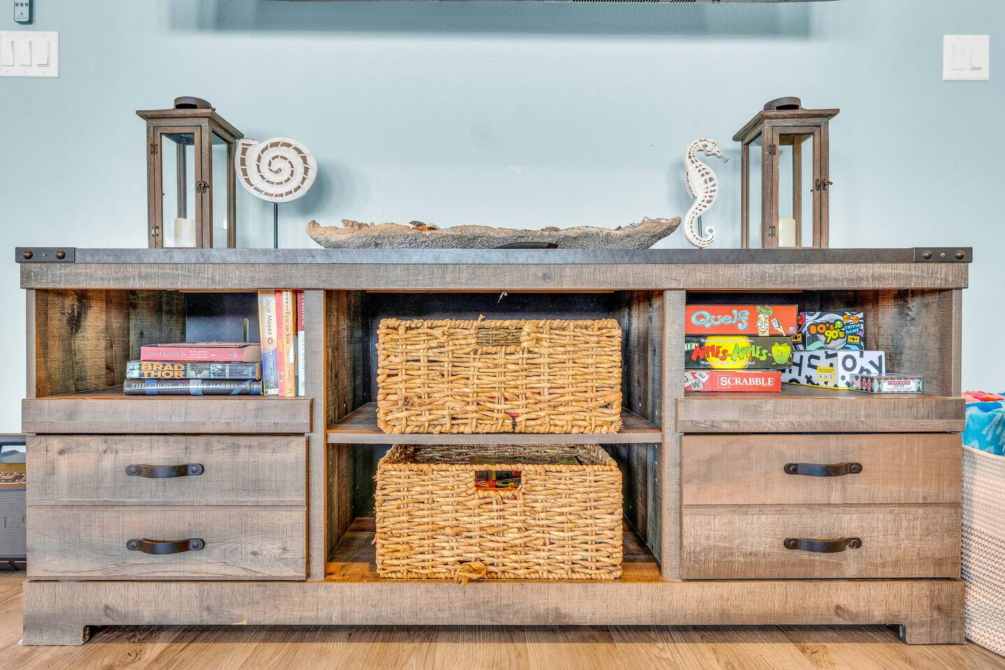 Self-check in with your code, sent before check in. Guests can use the included grill, beach gear and shower on the ground level. They have access to all areas on the middle and upper levels, except for the locked owner's storage and utilities access.